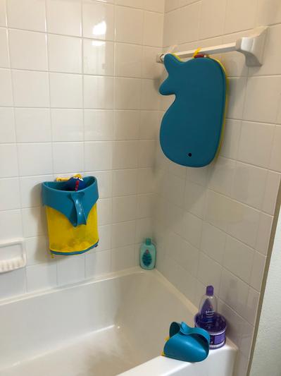 This has kept the toys out of the bottom of the tub and aired out so they can dry! Love it!!!