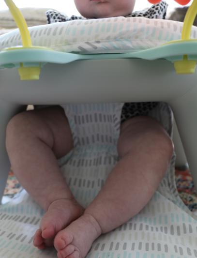 I registered for this and the matching activity center because I loved the calming colors and multi-use functionality. The activity center is okay, but it’s definitely not a “jumper” as described since there is zero stretch in the base chairs. But the chair was SO disappointing. My son was a preemie and could barely fit in it anymore as a smaller 6th month old. When he did fit the cover made it impossible for him to sit sit with out slumping forward or to the side because the bottom of the cover constantly slides around and comes detached. I tried using it without the cover but the chair its self has rough spots where it’s adhered together. It would be better if you could detach the foot base but you can’t. Sadly, this was a fail for us!