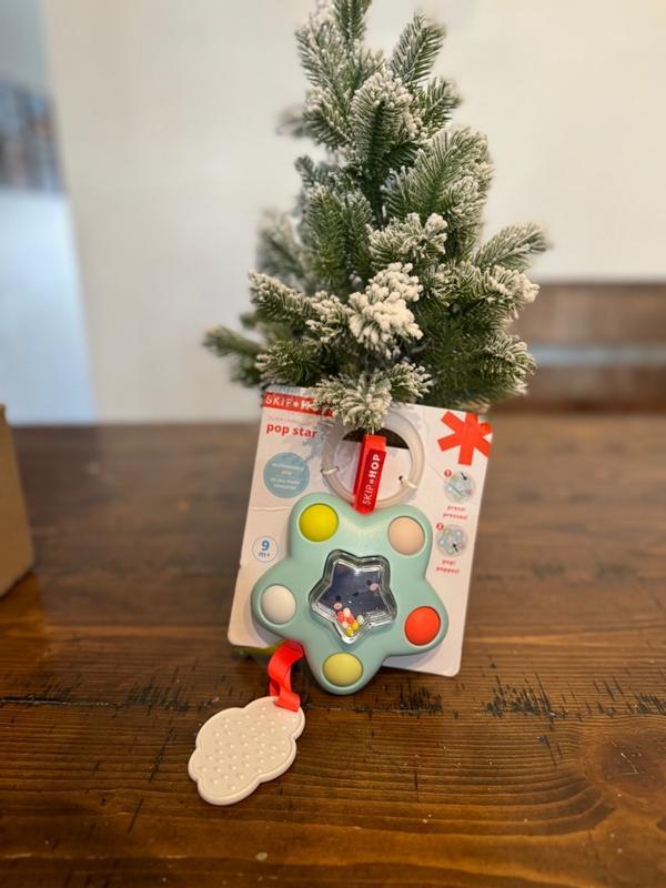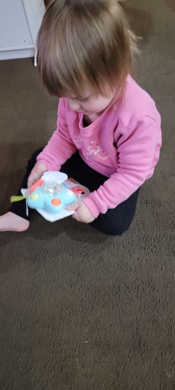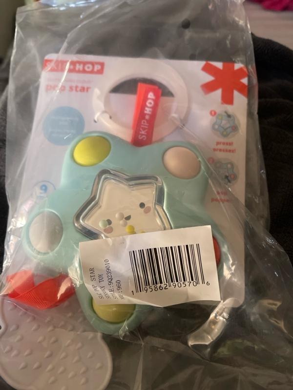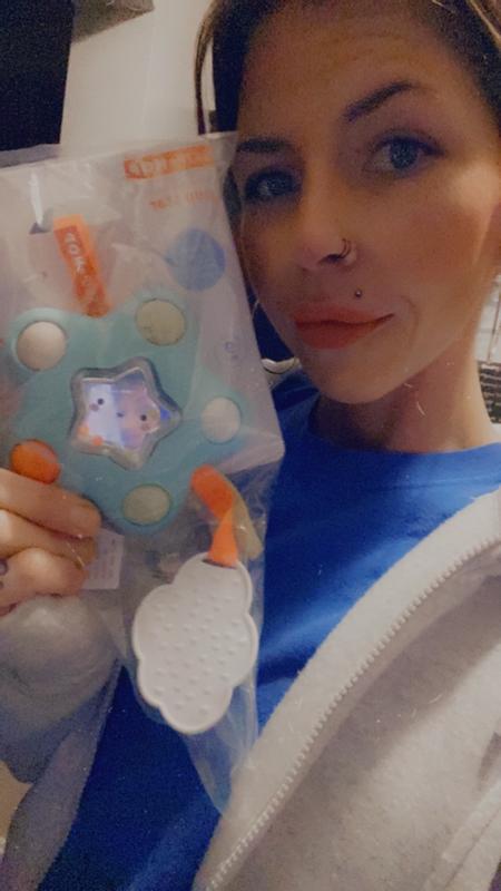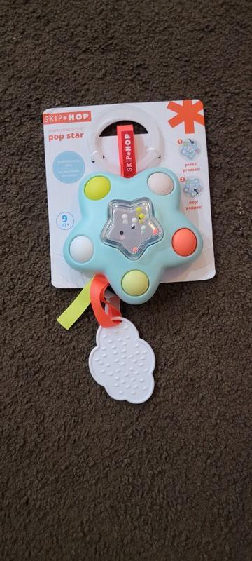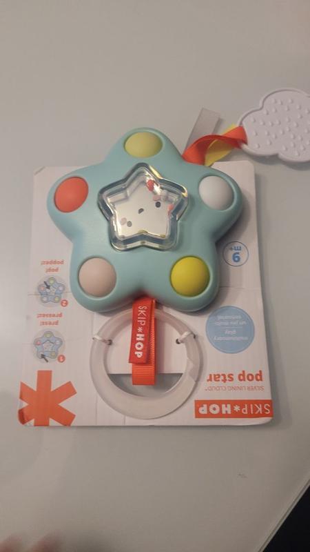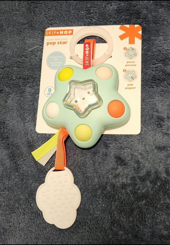 This Cloud Pop Star Sensory toy is so cute! It’s made very well. You press down the pop it parts then press the middle for the pop it’s to release. My two year old loves playing with it. It can be great for babies as well.