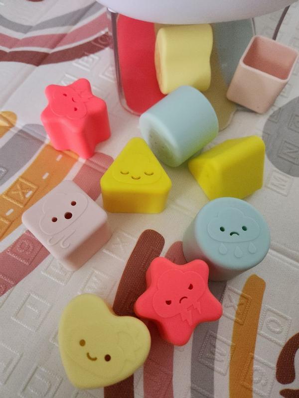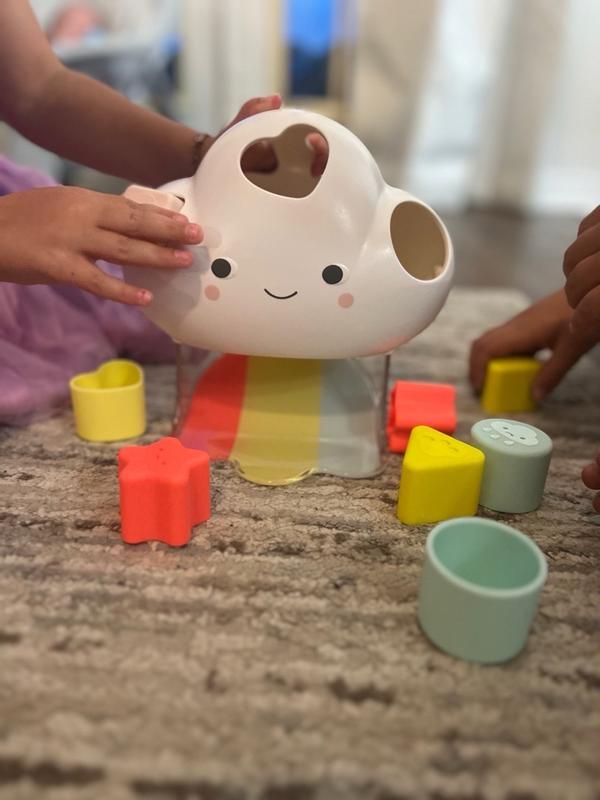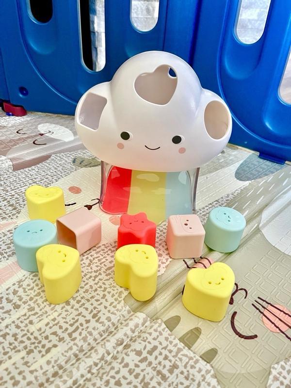 This toy is both educational & fun! My soon to be new grandson will learn both feelings & how to sort shapes ! It also helps with hand eye coordination. Love the cloud shape base ! It’s colorful too . Looking forward to Xmas time . He’ll be the perfect age for this toy ( gift )
