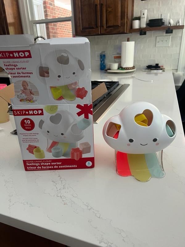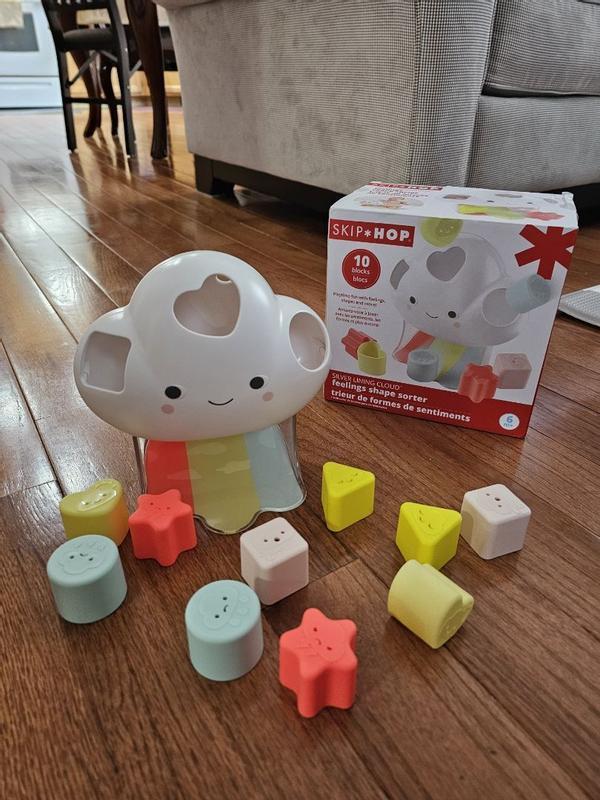 The Silver Lining Cloud Feeling Shape Sorter by Skip Hop is an absolute delight! This toy has quickly become a favorite in our household. The design is adorable and engaging, with its cheerful cloud shape and vibrant colors capturing my child's attention instantly. The shapes are perfectly sized for little hands, making it easy for toddlers to grasp and maneuver them into the correct slots. What I love most about this shape sorter is its educational value. It not only helps with shape and color recognition but also enhances fine motor skills and problem-solving abilities. The soft, plush material is a great touch, ensuring it's safe for even the youngest users. The build quality is excellent, as expected from Skip Hop. It's durable and easy to clean, which is a huge plus for busy parents. Overall, the Silver Lining Cloud Feeling Shape Sorter is a fantastic blend of fun, safety, and learning. Highly recommend it to anyone looking for a thoughtful and engaging toy for their little one!