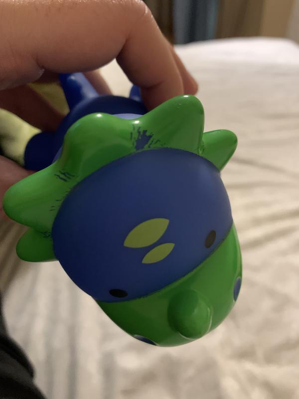 My baby just loves all the different light up colors that the dinosaur has and he gets excited during bathtime seeing the colors.
