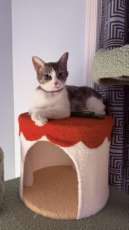 - Variety of Cozy Spots:Two roomy condos, a plush perch, and a rotating basket bed offer warm, comfy spaces to nap or observe.