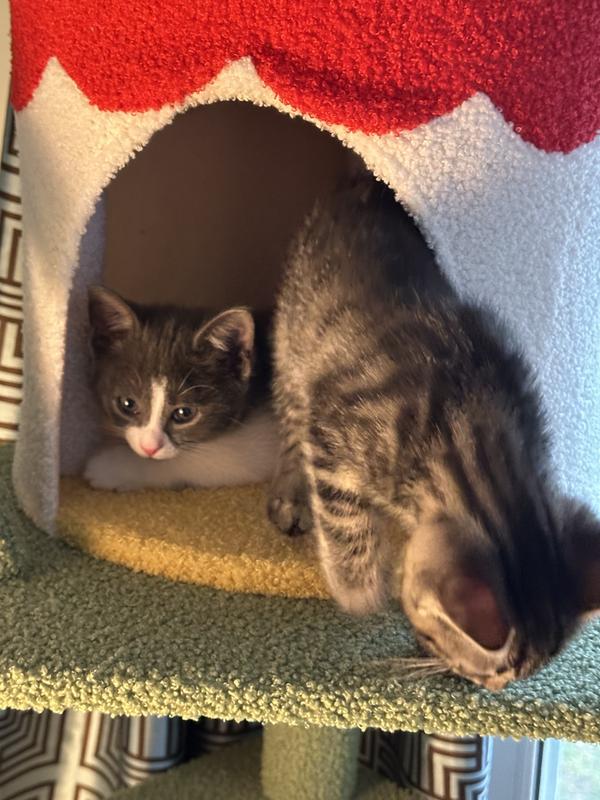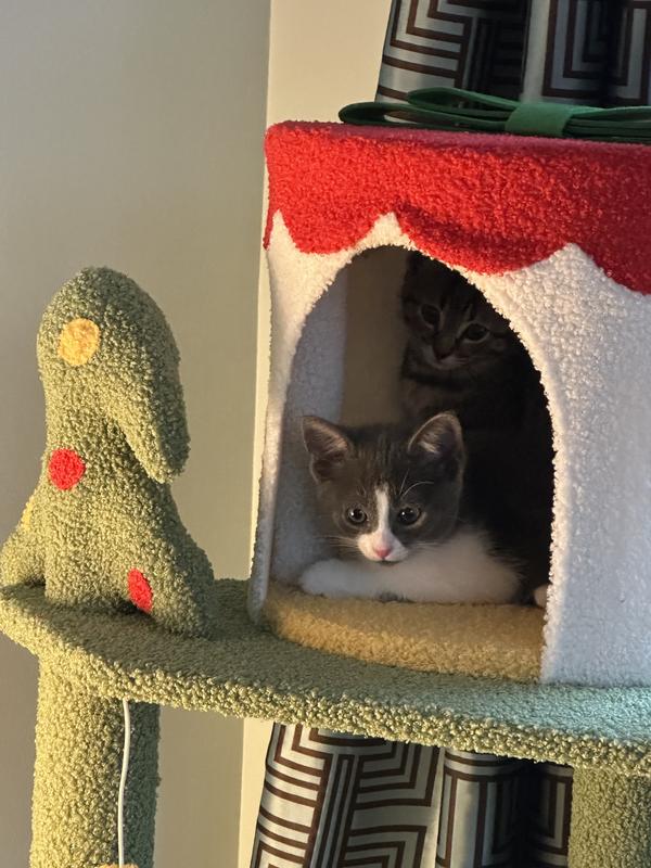 - Holiday Cheer in Every Detail:With Xmas tree accents and snowy rooftops, this cat tower doubles as charming holiday decor.
