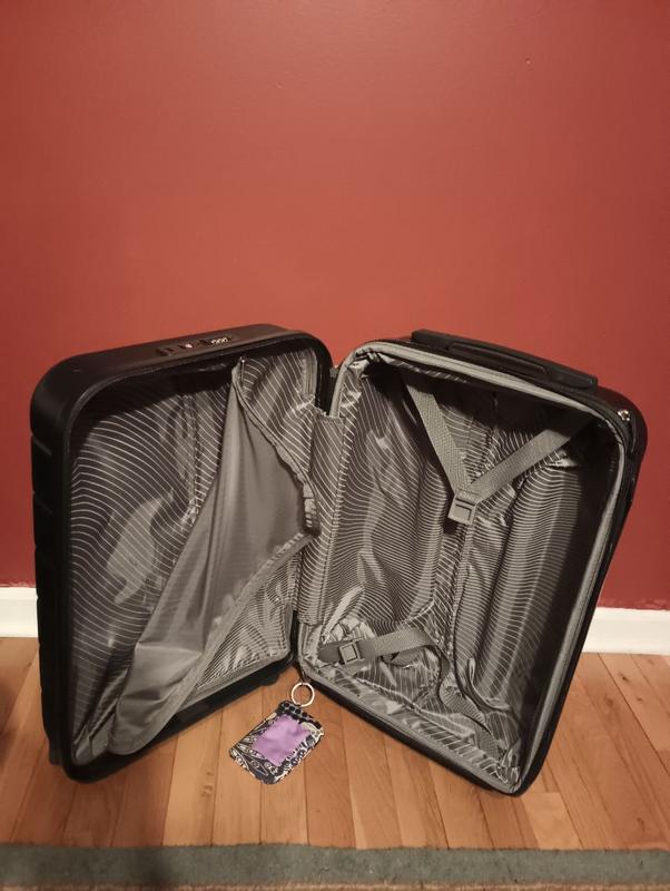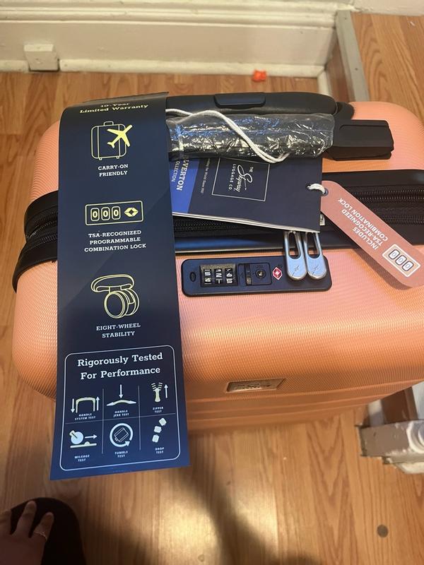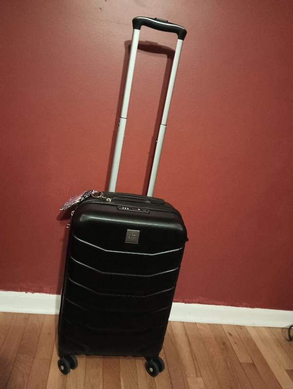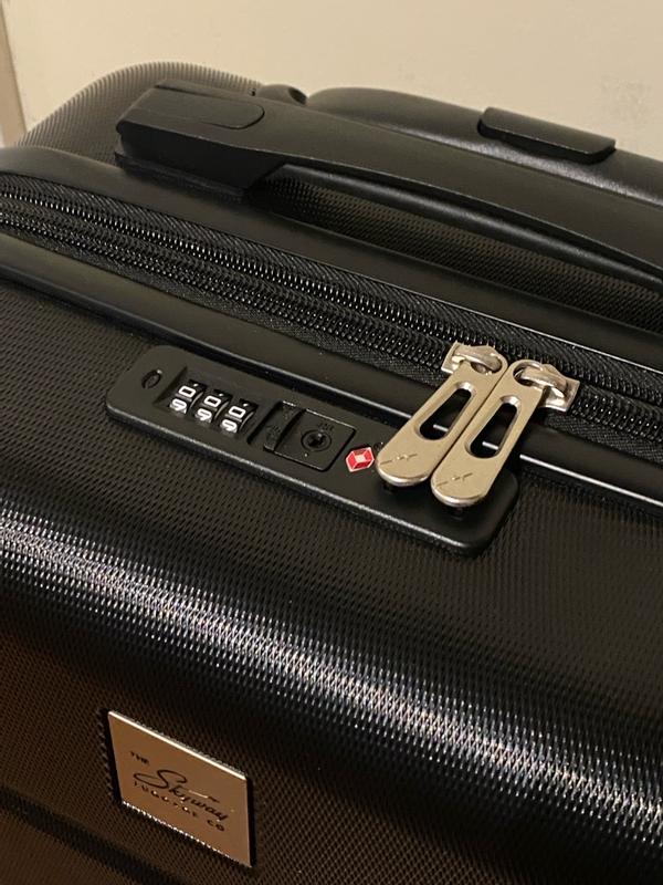 This luggage is so cute and the perfect color to stand out. It’s carry on sized with tsa locks. I had no problems using this on my flight. This holds a lot of clothes and it still does not feel heavy.