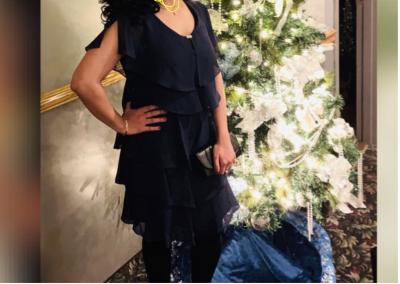 Web ID: 9901662SL Fashions's petite tiered capelet dress takes its cue from bygone eras in fluttery layers with a subtle rhinestone brooch accent at center.