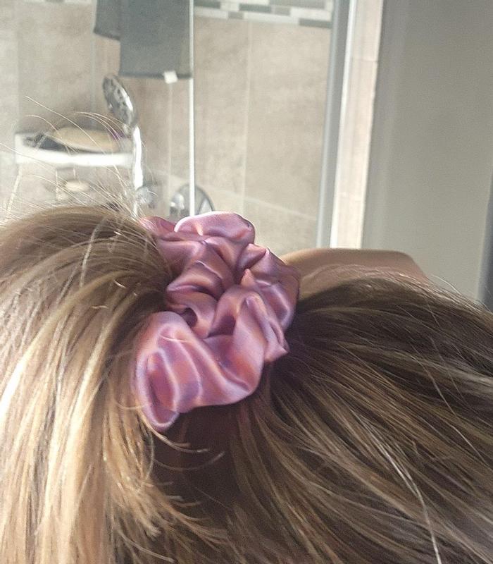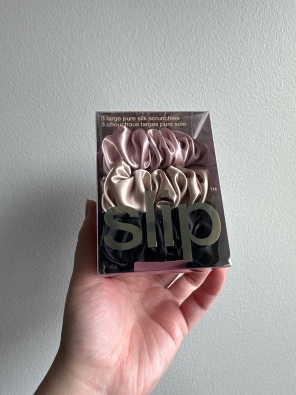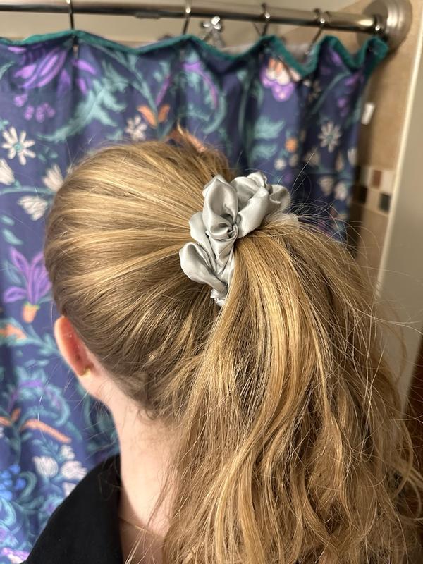 The silk on these scrunchies is so soft. They slide easily on and off your hair and don’t pull at all. Unfortunately after one use I feel like the elastic is already stretched out. It doesn’t stay on my wrist after the first use. If they work on the elastic, this would be an amazing hair product.