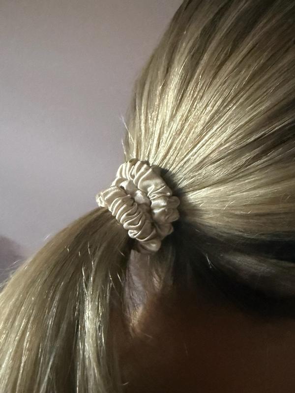 This combines the benefits of a scrunchie with the size of a normal hair tie and it’s amazing! It does not pull my hair and isn’t too big and obvious. The scrunchies hold all day and I even used one to sleep in a loose bun and it stayed all night. Very impressed by this new product.