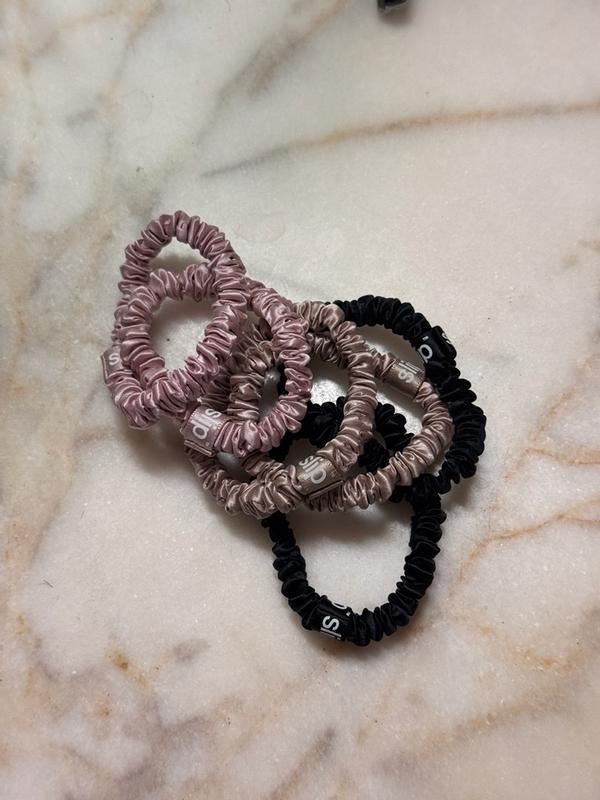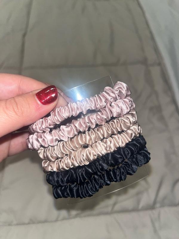 You can officially consider me a skinny scrunchie convert! I really had no idea what to expect from these based off the picture alone, but they are way different (and better) than I thought they’d be. I’ve seen thin scrunchies before but they still take up a lot of room & can be an eyesore of left on your wrist. These however are perfect! They fit in purses easily (and thin enough to not get snagged in zippers) + work wonderfully in my hair + don’t ruin an outfit if forgotten on my wrist. Now that I have these I’d love to get more and finally ditch my old thick ratty ones. Best of all, I appreciate that they are still made from silk so they aren’t as damaging to your hair. Such a win!