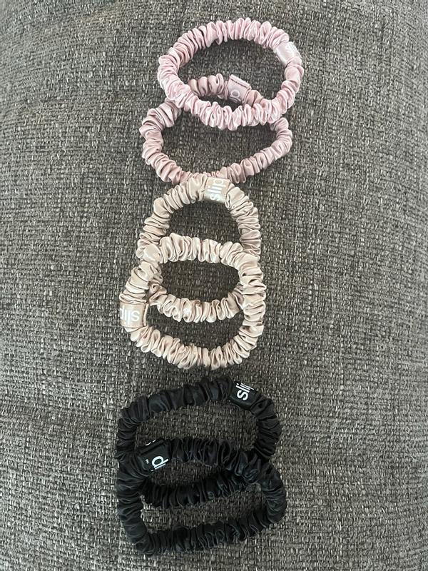 These are some of the best hair ties I’ve ever used! They don’t leave weird creases in my hair and they don’t get tangled up! The only negative I could say about them is if you forget to take it off your wrist and it gets wet it stays wet for a long time but that’s not the products fault!