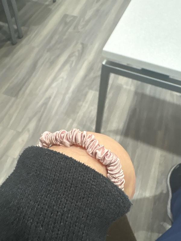 My go to scrunchie! It keeps my up and in place no matter what i’m doing! Whether it’s being a mom, chores around the house or a gym rat! Super comfortable, doesn’t pull my hair when it’s time to come off! It works wonders even if you have thick hair! The size is perfect even to carry as a bracelet so you can use it when ready.