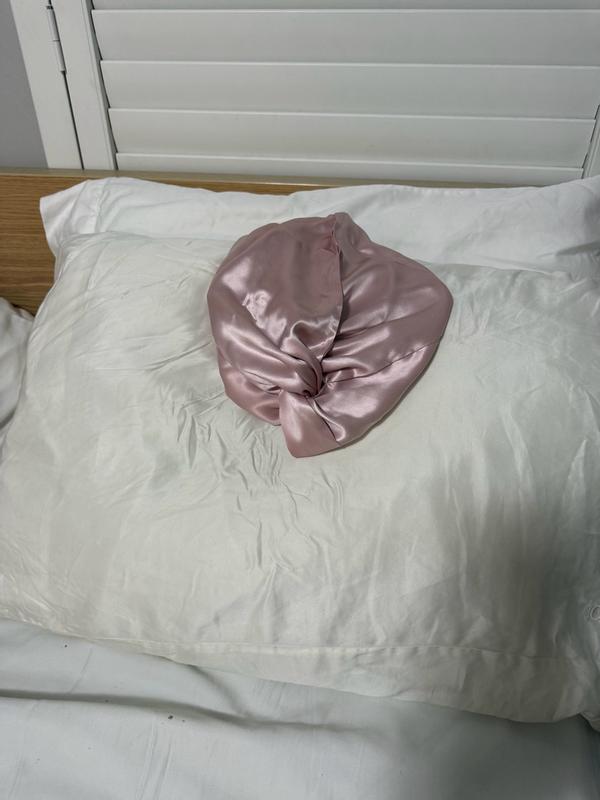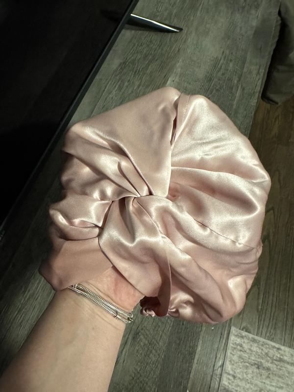 I really love this pink turban!!! The weight is perfect- not too heavy and very comfortable to wear all night. The craftsmanship is excellent, it feels high quality and well made. The coverage is great and keeps my hair fully protected. It’s easy to wash and still looks like new. The durability is impressive it hold its shape and color after multiple uses.