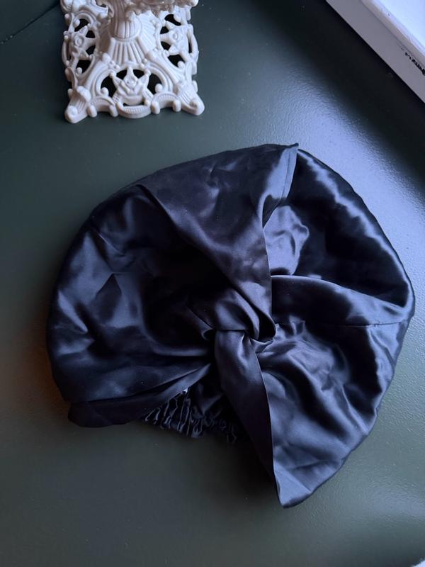 Beautifu!l Very Chic turban type head cover. I loved the real silk fabric feel, and the quality construction. The fabric was a little stiff at first but after a washing it was just fine. I was a little disappointed with the size as I have a lot of hair and found it tight and a bit difficult to wear comfortably. Overall I would definitely purchase multiple colors in a larger size.