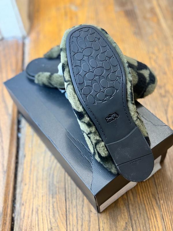 These Coach Signature Shearling Slippers are very beautiful. They are not exactly a slipper, more like a loafer. The sole is hard and can be worn out and about. My biggest complaint is the sizing. I received a size 8 which is my normal shoe size but these are not wide foot friendly. The 8 fits me almost how a 7 and a half does. Overall the slippers are very pretty and sturdy.