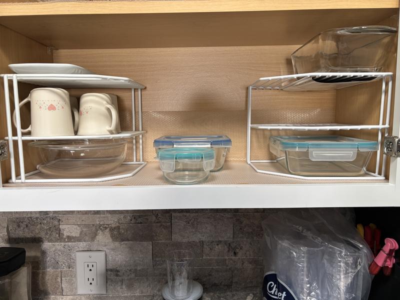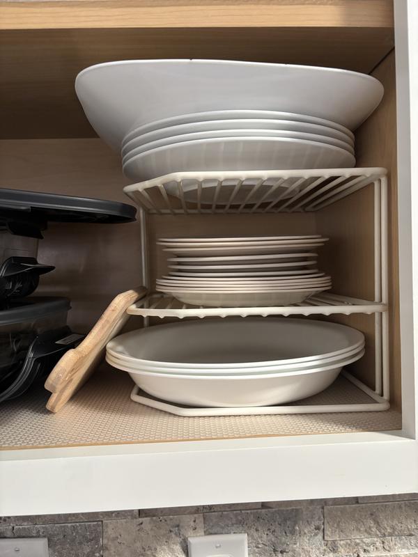 The 3-Tier Kitchen Corner Shelf gave me the extra room needed in my kitchen cabinets without any wasted space. The Shelf is very sturdy. I am re-evaluating all of my cabinets to determine whether I should buy more.