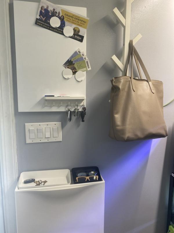 This dramatically upgraded my entry way and mood by giving me a place to easily set my keys, sunglasses and dog leash as I enter the home! Very easy to install, too. Perfect size.