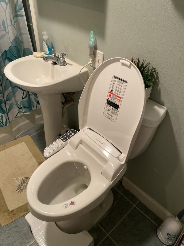SB-110 Electric Bidet Toilet Seat for Elongated Toilets with Attached Control Panel, Stainless Steel Nozzle, Child Wash & Dry, White