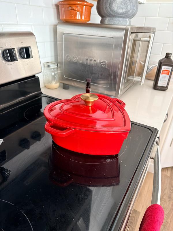 I absolutely love this product! It isn't any heavier than an dutch oven should be. Its super easy to clean. The handles are just big enough to grab onto without being to big. It seals perfectly without noticing steam escaping while cooking. I've only made soups and stew so far, but im wanting to start baking bread and I cannot wait! Can you imagine heart shaped bread?! ♡ I hope to make more purchases from this company in the future as I've always wanted a Dutch oven and would definitely love a bigger one since this one has made me fall in love!