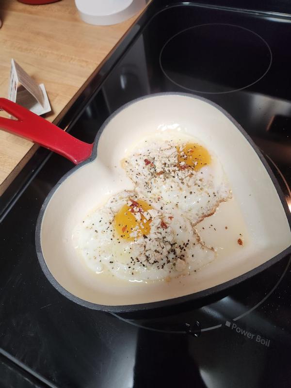 This non sticky pan is durable and perfect for cooking! I am using it for my pancake and steak and the food won’t stick to the pan. It is super easy to clean afterwards. Also, the heart shape makes the food so unique.