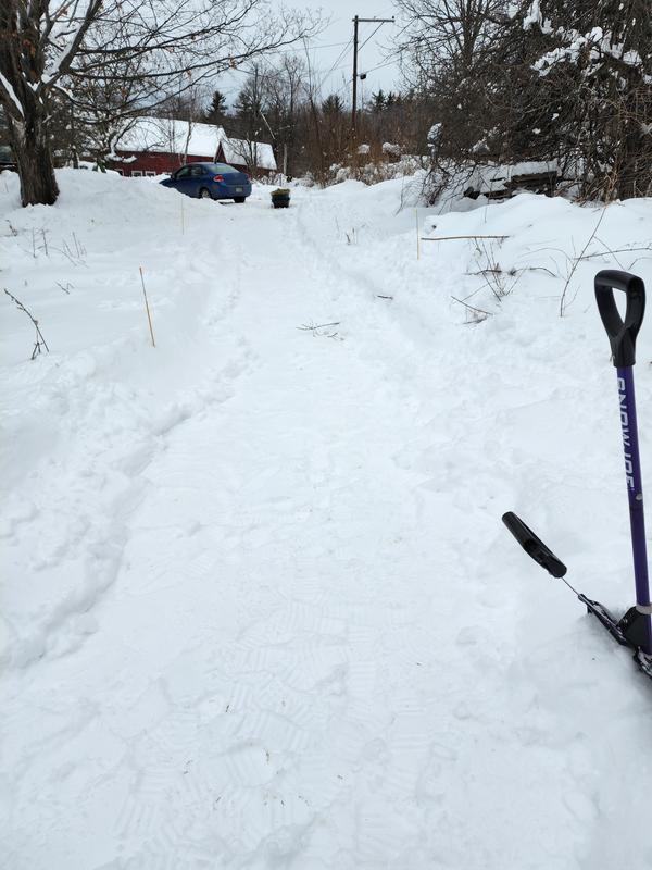 I HONESTLY really LOVE my Snow Joe shovel with its extra handle, and it REALLY DOES "save my back" (as I'm 76 years old). The one THING that I wish they would improve upon is the fact that the aluminum wear strip (cutting blade) seems to GRAB or STICK when I reach the concrete level of my driveway. I know it would cost more, but my suspicion is that a STAINLESS STEEL wear strip wouldn't do this, and I personally would be willing to PAY MORE for one with that.