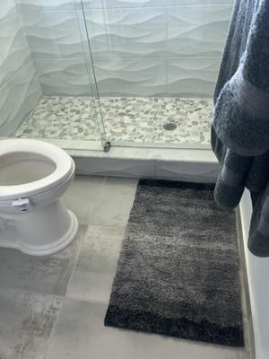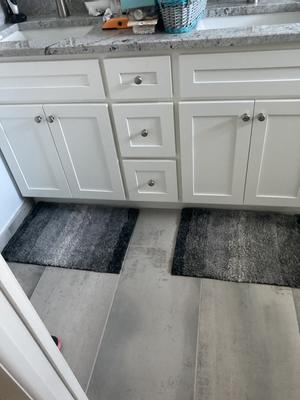The large bath rug is great, comfortable to stand on and easy to clean. The smaller one that goes in front of the bathroom sink gets matted down and is difficult to clean and does not look good. I eventually replaced the small.