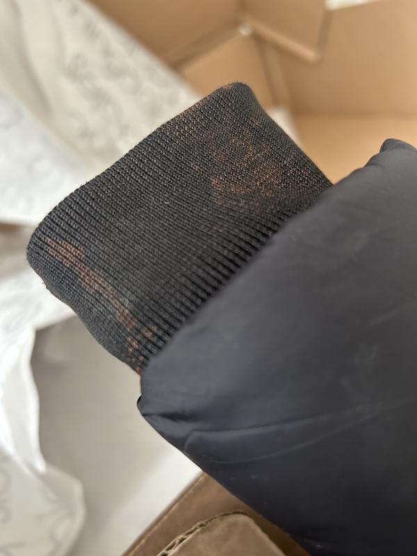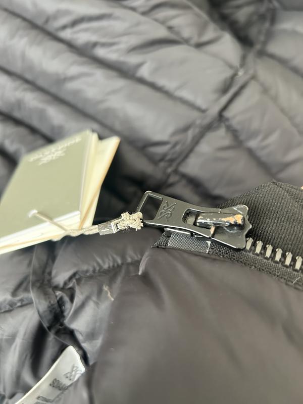I received a used jacket. Makes me question Bloomingdale’s standards for sending this out. There were stains all over the jacket like it’s been heavily worn and the zipper was chipped so the brass underneath was showing under the black paint. Not sure how the jacket got this worn when the tags are still on. The jacket itself is nice - warm yet lightweight so I’m going to send this one back and order another that hopefully comes in better condition