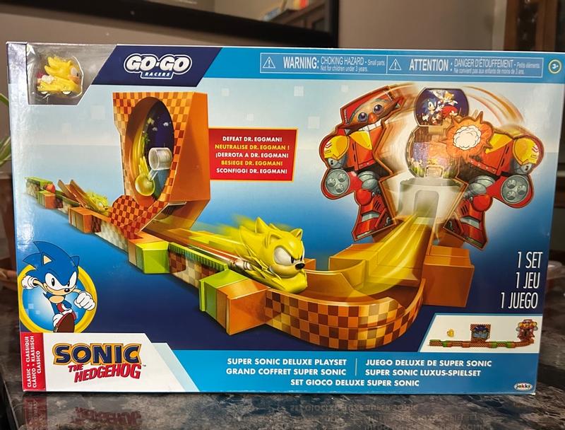 I got this Sonic Gogo racer playset for my 4 year old. He really enjoys watching the character set off each different part or this little track. It was slightly difficult to assemble and reset the track each time for him at first, but he was able to figure it out. I think alone this set is ok but much more enjoyable with the additional connected tracks and characters. It is slightly smaller than I’d expected, but I would still recommend