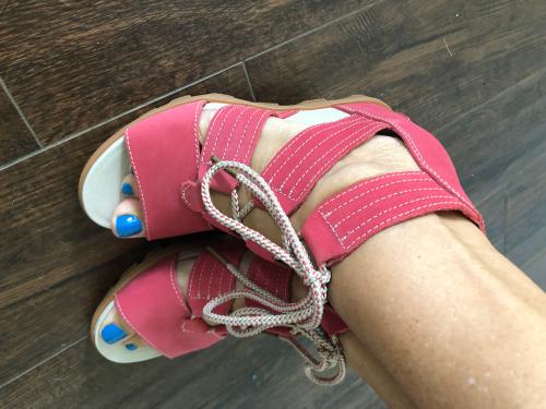 Love these shoes/sandals. Have owned a tan pair for 5+ years and they are my favorite shoes. So so happy to have another pair! So comfortable. Gives me height but are great to walk in. Thank you!!!