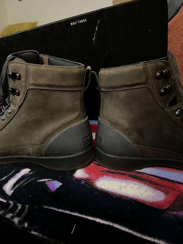 Cuff is to short. Just doesn’t fit as well as others . Maybe a half size up would be better. But not all that happy about them. Maybe they’ll be tolerable once broken in idk . Other boots from sorel I’ve been much happier with.