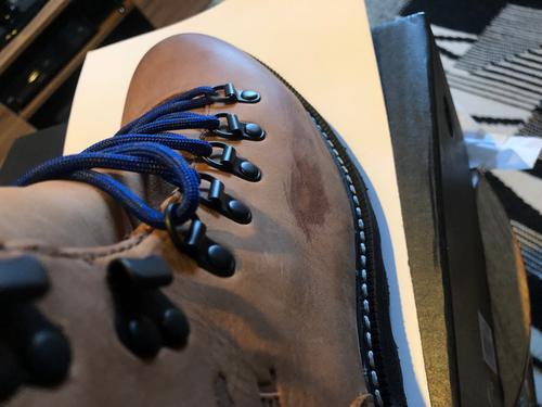 the leather inside the boot tends to bunch up near the laces cuasing an uncomfortable feeling on the right foot only. not sure if it's becasue they are new, and yet to be broken in, or if it's a design flaw. however, the overall quality and fit is very good.