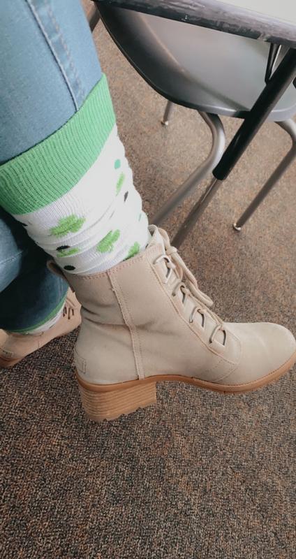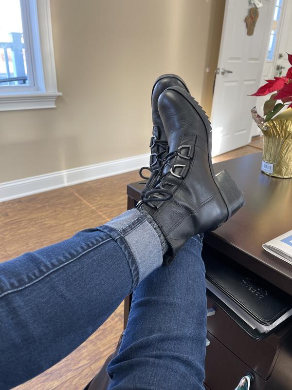 I Absolutely love these boots! They are so comfortable and can be dressed up or down. I can wear them all day and my feet feel great. After wearing them a couple times.. it's like they molded to my feet.. just perfect!! They are easy to slip on and off unlike some other Sorel boots I own. They fit true to size and the heel is the perfect height. They are also perfect for the rain. I got caught in a rainstorm. My feet remained dry after having to trek through some deep puddles. I bought them in black. I love them!!
