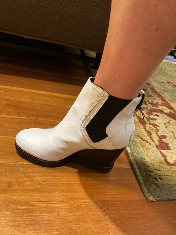 I have a client and a coworker who each own the same wedge and they gave them rave reviews. These boots live up to the Sorel legend being both functional and comfortable, the added bonus is that they’re stylish. I’m an Interior Designer, and I’m on my feet almost my entire workday walking and standing for hours at a time and these are truly amazing. I have a narrow foot, so they are true to size for me with room for a sock. I wear a 9 1/2 and these were perfect out of the box both with and without socks. The cinnamon color suede is extremely versatile as I can wear it with my black, white and denim jeans.