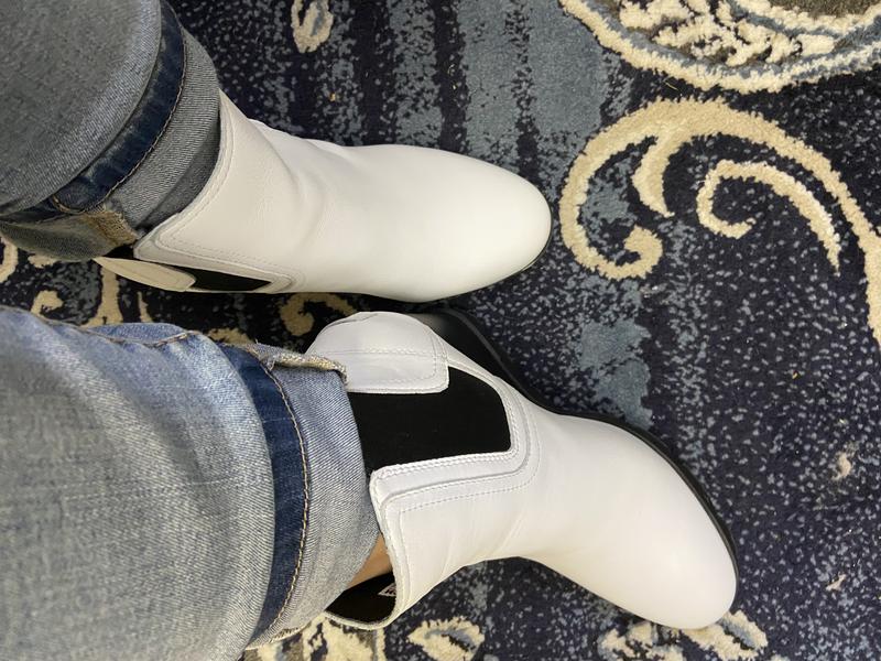 I love the wedge height on these booties. It’s 3 1/2 but it feels like a 3” heel. These are great go to booties because they go with everything. TTS.