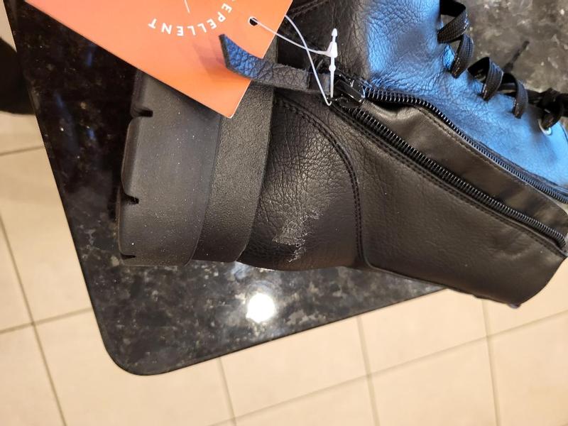 We're incredibly sorry that happened with your Soul Ozzy Weather Resistant Combat Boots. We value your feedback and have forwarded this information to the appropriate team. If you need further assistance, please don't hesitate to contact our Consumer Care Department. You can find our contact information here: https://www.naturalizer.com/help/faq?icid=Footer_Help_FAQ.