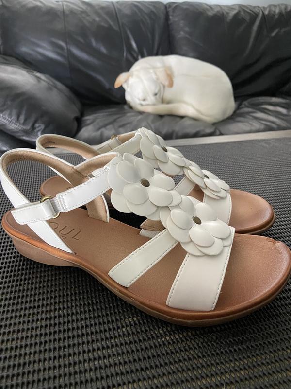 Let the sunshine in. Sunny days were made for this flowery sandal from SOUL Naturalizer, featuring Feel the Cool technology for a comfy, breathable feel all day. Inspired by the way you live. Floral accented sandal with an easy, relaxed fit. Fabric, manmade metallic or fabric/manmade upper with a round toe. Adjustable hook-and-loop closure. All-Thru Comfort: soft foam lining, arch support with memory foam, sock lining, lightweight and flexible outsole. Feel the Cool technology: cooling system designed to make you feel fresh and comfy. EVA contoured footbed. 1" heel. WHY YOU'LL LOVE IT: Ingenious relaxed utility. Unstructured, uncomplicated styles thoughtfully designed with your comfort in mind so you can live in the moment. Available in an inclusive size range of tough-to-find sizes and widths for a better fit and feel.