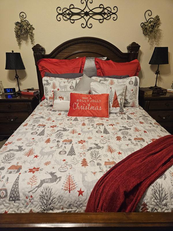 I was hesitant about the bed spread but once I unpacked the items and saw how it looked together, I am well pleased. The bedroom is now Christmas ready! Once the holiday is over this will be easy to store vs a huge comforter.