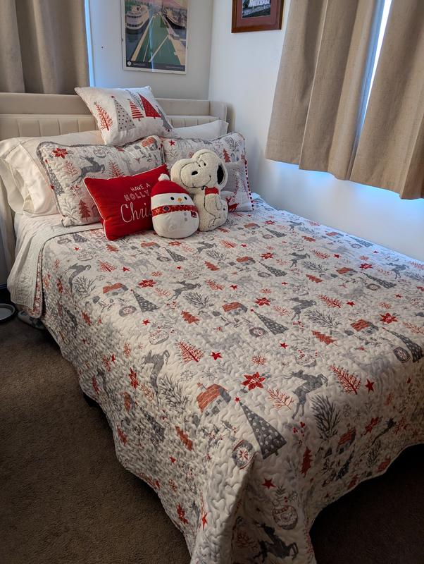 Absolutely love this bedding! I’ve never had holiday bedding before and this is good quality for a great price considering you get the quilt, two large shams, and 2 decorative pillows and one square sham. The colors are bright and it looks just like the picture. It’s definitely something you could use through the winter months not just Christmas if you switch the red pillow out.