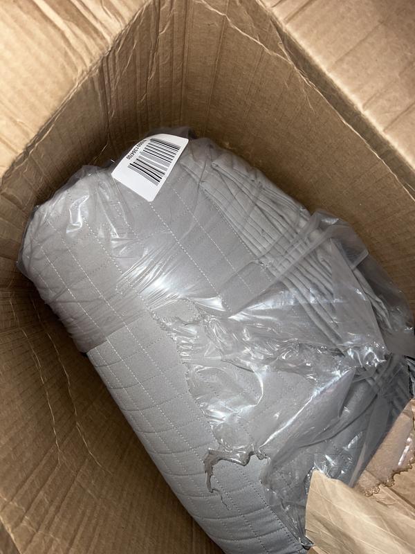 The comforter and shams arrived with a hole in the box. That was a delivery issue. The comforter was nicely made, lightweight and oversized just right. The problem was the color was not quite what I thought. The color just didn’t work for me.