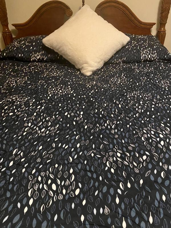 This beautiful comforter is soft, perfectly warm (to sustain us during cold Michigan winters) and it has a luxury feel-the fabric is silky against the skin. The print is attractive and the comforter is a bit oversized which is perfect for us. Highly recommend this set.