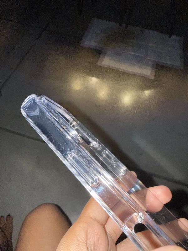 Case is very slim and sleek, doesn't make phone bulky at all. Super clear material lets the phone's true color come through.