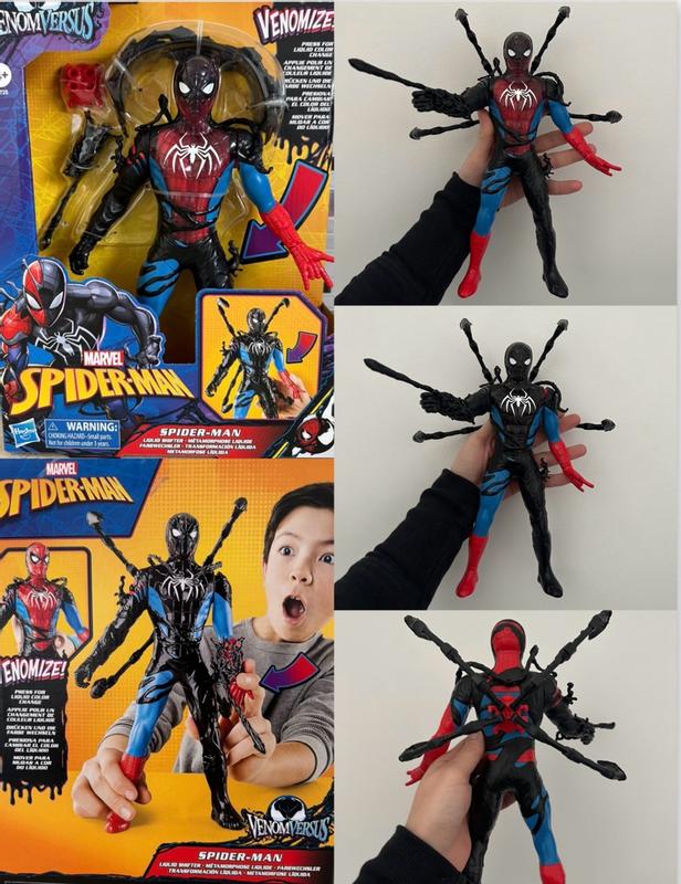 This very cool Spiderman Liquid Shifter was a hit with my 7 yr old. Stands 27 cms tall with built-in black liquid giving the effect of Venom. When you press the figures arm down it activates the liquid shift feature and watch as black liquid Venomizea Spiderman. Once released, the black liquid will vanish transforming back to Spiderman. Comes also with Venom inspired accessories. Perfect gift for kids ages 4+