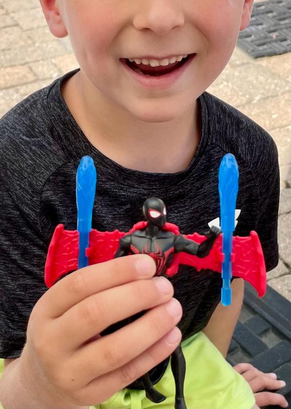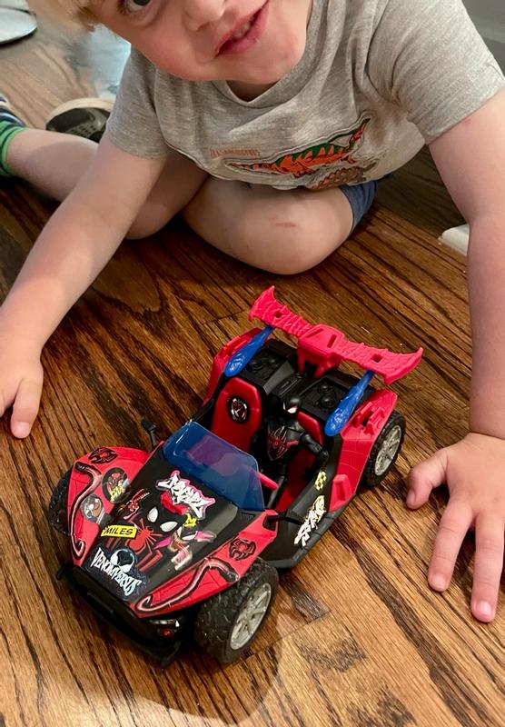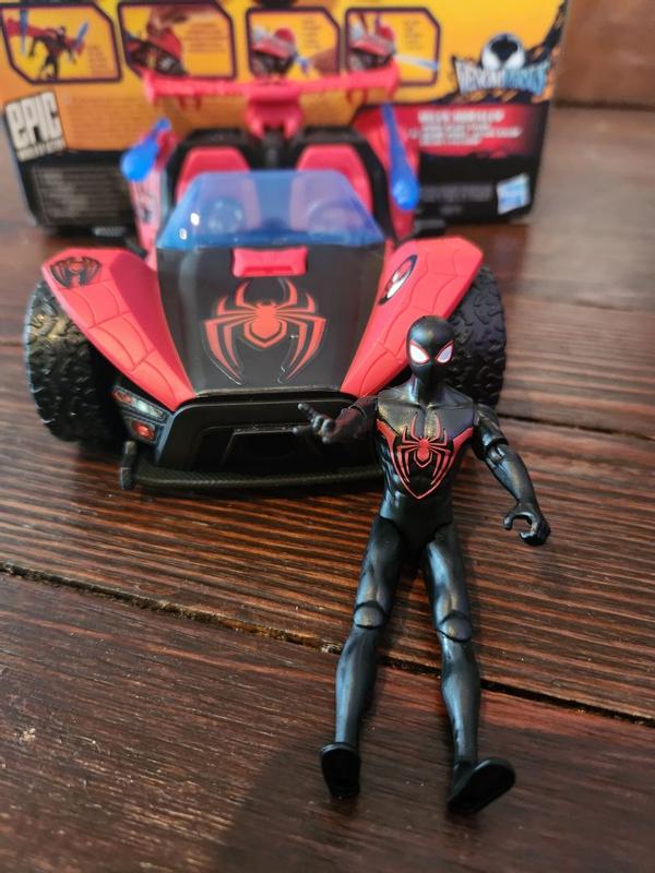I received the Marvel Spider-man VenomVersus Epic World of Action Miles Morales Remix Blast Racer and it’s awesome. It includes the vehicle, poseable Miles Morales figure, projectiles, a sticker sheet, and more. It's sturdy, well-sized, and safe for kids ages 4 and up. All of the pieces are very sturdy and easy to play with. My baby cousin was able to play with it very easily as the miles figure fits into the car and the jet pack is easy to attach. Overall very detailed and easy to play with figure!