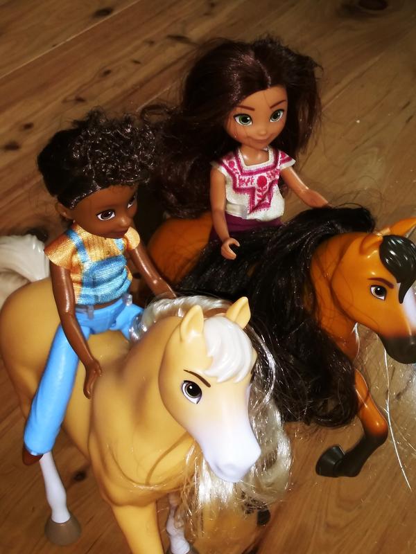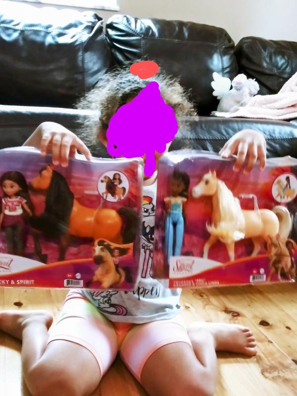 My daughter is almost 3 and has recently started loving horsea, so this Spirit toy is PERFECT! Comes with a little doll and horse, being my personal favorite feature the plastic holder on the horse (which to be honest I think it may be removed after unpacking) as she can set the little doll and move the horse around withouth the doll flying off every 3 seconds. Great quality and super cute!