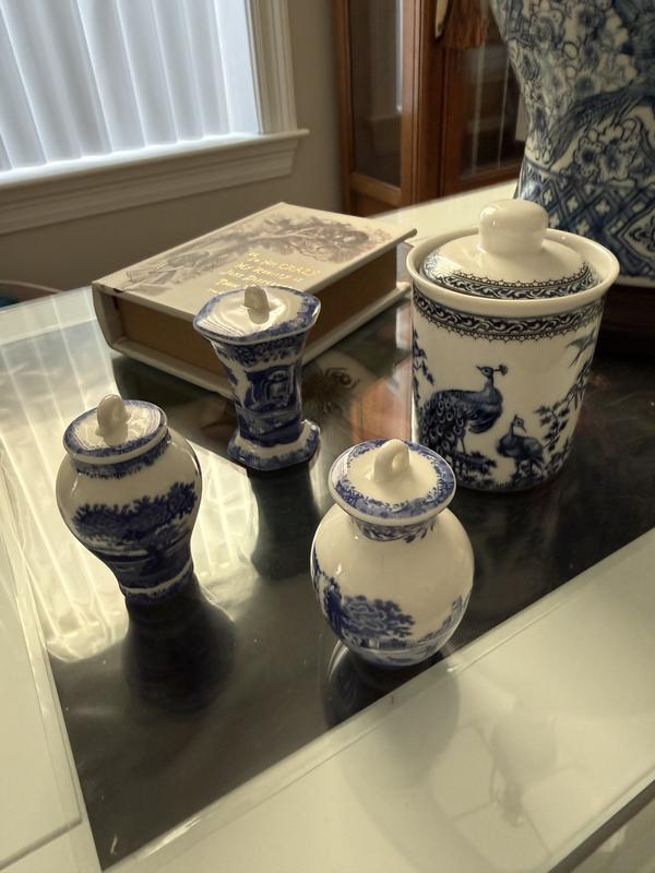 My wife is an avid Spode collector. She was thilled to receive the Blue Italian Mini Urn Ornaments and can't wait to hang them on the Christmas tree.