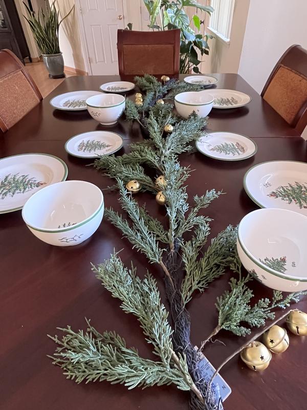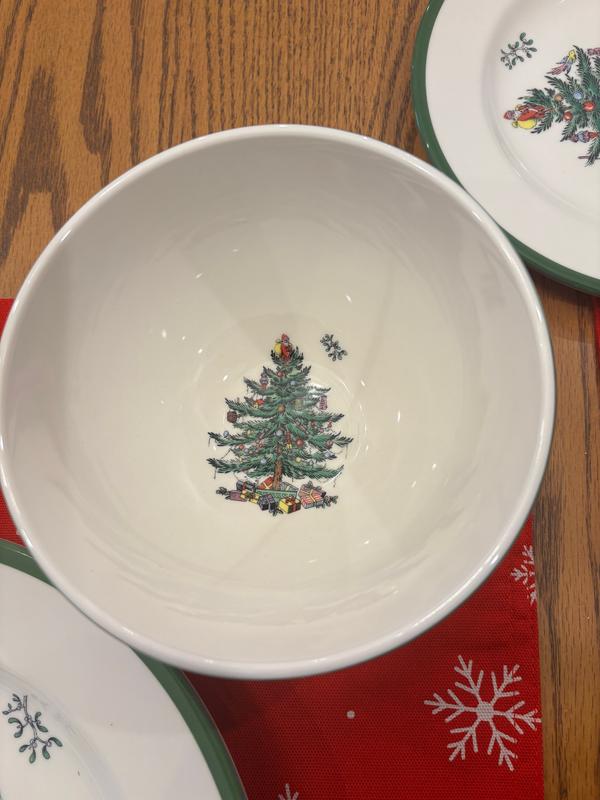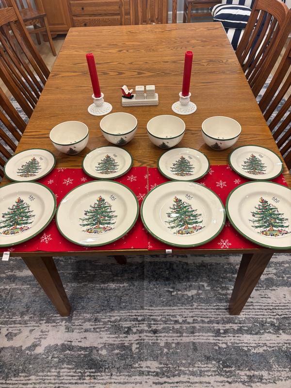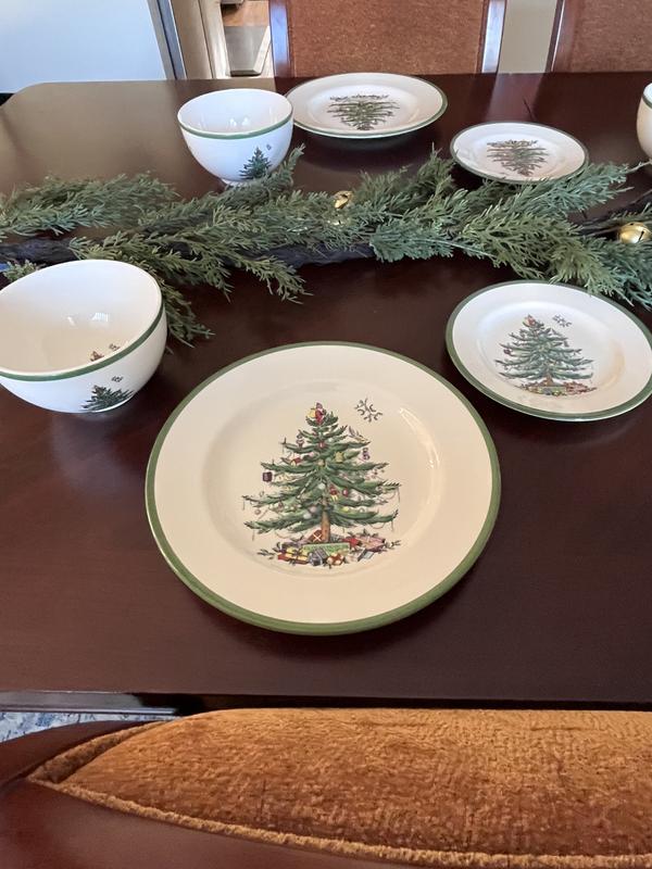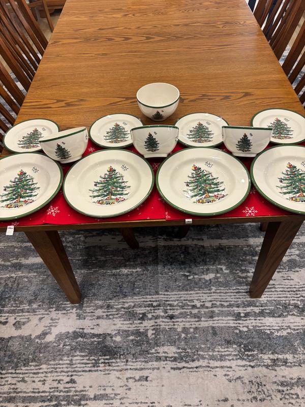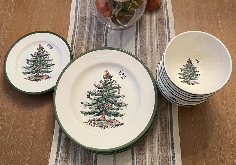 These came packaged in a box with secure packaging between each plate and bowl. This has a fantastic Christmas tree design on each item, with the bowls having the design on both the inside and outside. This set contains 4 dinner plates. 4 salad plates and 4 bowls. They are dishwasher safe, microwave safe , oven safe and freezer safe. This design has been in production for years so you can add to the collection that you already have or add to them in the future without fear of not matching the pattern. These are sold construction so fear of breakage is very minimal with normal use at the table. Beautiful design that looks elegant on any table.
