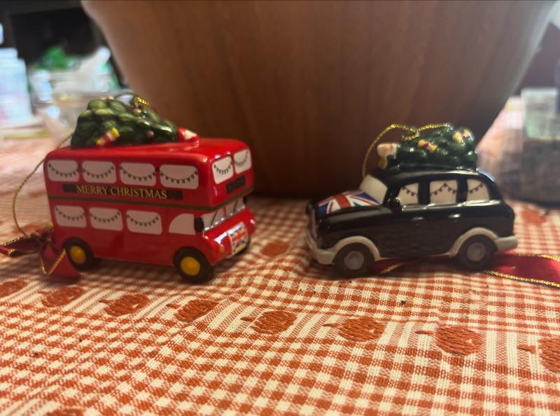 Experience the magic of London at Christmas with this taxi ornament from Spode. This iconic symbol of the city is adorned with a beautifully decorated Spode Christmas Tree on its roof.