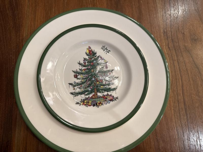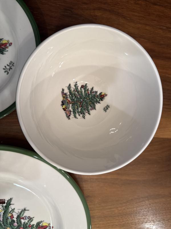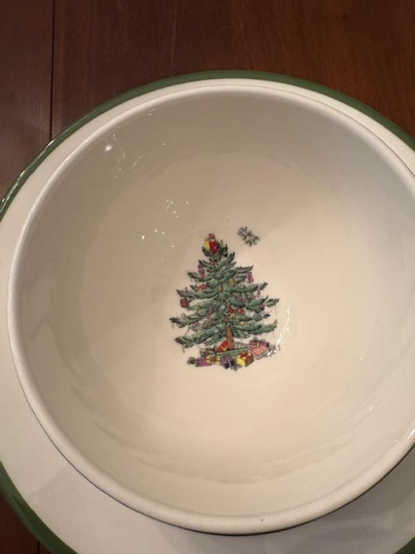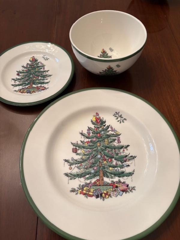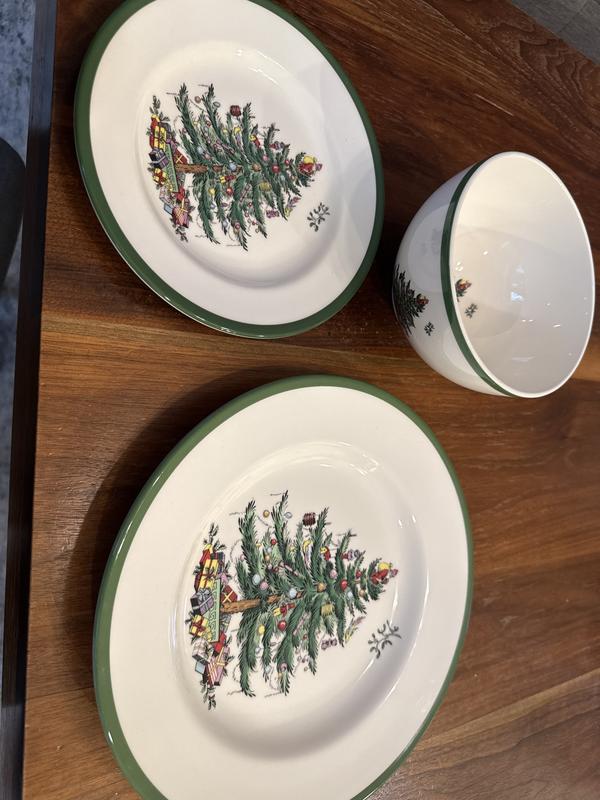 Cute set! The tree with little gifts and the green borders on all of the pieces are adorable! I love the way this set looks on a table, and how much green is in the design. It’s very festive, pairs very well with reds and greens, and matches my other Christmas pieces seamlessly. If I’m not using the whole set for dinner. I love using the bowls as snack and nut bowls for parties! The plates are also cute used as candy dishes or dessert trays. I highly recommend these, they are very versatile.