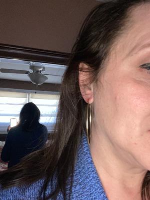 These earrings are beautiful and large hoops but they do not stay clasped in the back. I've had them less than a week and they fly out of my ears daily. Do not recommend.