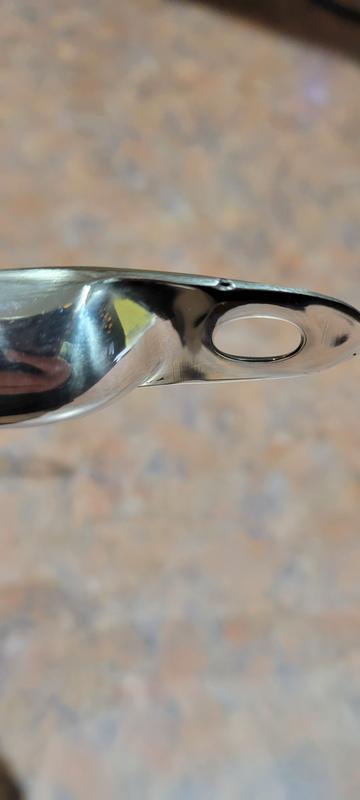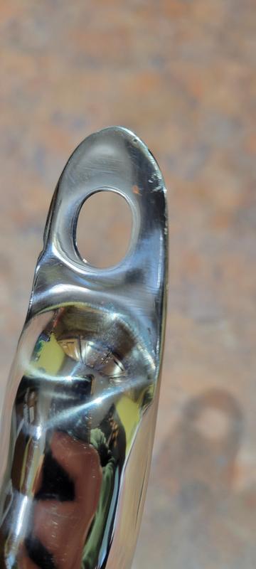 There are multiple defects in the metal by the hanging hole. This includes a small chunk missing. Other than that, the ladel is nice.