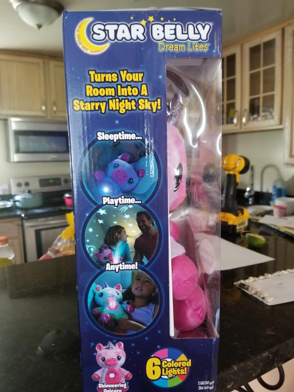 I bought this star belly dream lite pink/ purple unicorn like one month ago for my child and she loves it!! Its very cute and very brillant lights..and she loves unicorns so she is happy and I would love to recommend this for ur child
